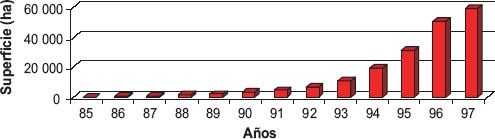 Los cambios tecnológicos más importantes de los años 90 fueron el aumento en el uso de fertilizantes y la adopción de la siembra directa (Figura 3).