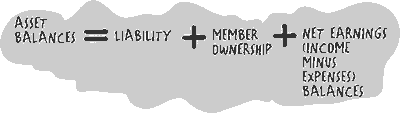 The Management Team also needs to know what would remain after all debts are repaid. This remaining amount is called Member Ownership and is obtained by subtracting from what the SFGA owes (its Liabilities) from the total of what the SFGA has (is Assets). Member Ownership is a way of describing what the SFGA is worth to members after all its debts are repaid - in other words, what members would take home after paying all outstanding bills.