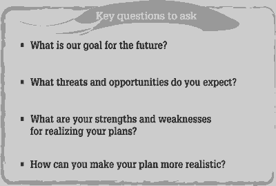 Ask SFGA members how they see their SFGA changing in the future. Do they hope to expand or add a new service? Does the SFGA have the capacity to achieve this objective and what problems might it expect to encounter? What about expected changes outside the SFGA: new government policies, programmes, new technology, new competition, prices, and inflation? What problems or opportunities will these developments create for the SFGA? How can the SFGA prepare itself to meet these threats and opportunities? Then ask them to list their answers on a sheet of paper or on a blackboard.