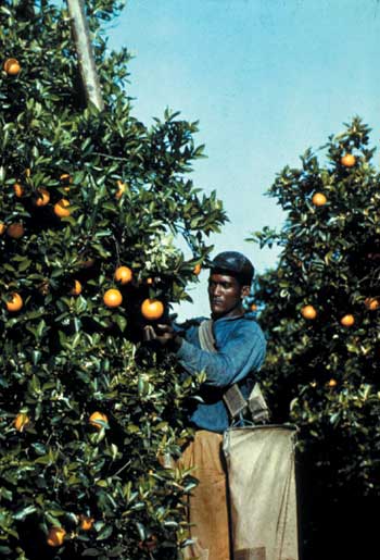 Citrus is the largest fruit crop in the world with about 60 000 000 MT (1 MT = 1 000kg) grown, slightly exceeding grape production (FAO, 1999). Citrus is grown in two belts on both sides of the equator from about 20 to 40 degrees of latitude (Figure 11.2). All citrus is thought to originate in the Himalayan region of southwestern China and northern India. Columbus brought citrus seeds to the western hemisphere in 1493 and planted them first on the island of Hispaniola, now called Haiti (Figure 11.1). Citrus became commercialized in the Americas in the late 1800s. In the early to mid 1900s the principal producing states were Florida, Texas and California in the United States (Figure 11.3). Following a devastating freeze in Florida in 1962, a group of Florida businessmen began to establish citrus groves and later a processing industry around Sao Paulo, Brazil. This industry grew rapidly and after being sold to the Brazilians, it soon surpassed Florida in production by the mid-1980s. Brazil has become the dominant market leader in citrus concentrate. Orange production far outstrips the production of all other citrus (see Table 11.1). Brazil leads the world's orange production with 19 million MT in 1996 to 97. Argentina produces about one-fourth of the world's lemons at 800 000 MT.