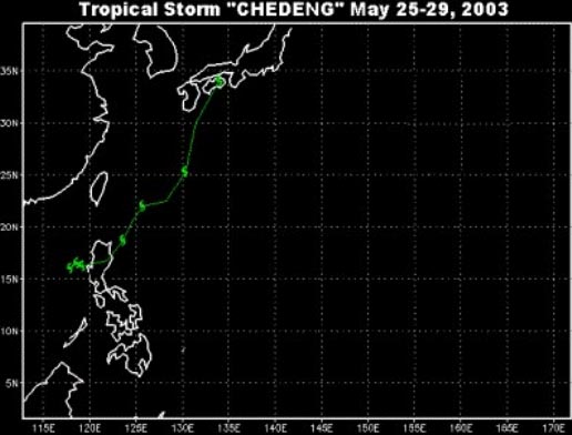 Figure 12. Track of Typhoon Chedeng, May 2003