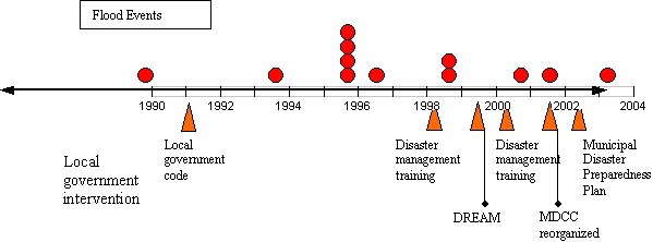Prior to November 1998, the institutional arrangements were weak to monitor hazard and the emergency situation. The local government relied on PAGASA weather updates and typhoon advisories broadcasted from commercial radio stations, police reports on any flood-related incident, and motorists' information on impassable roads.