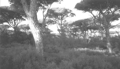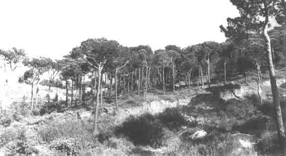 Rodal de Pinus pinea protegido en el parque nacional de Arabida, en Portugal