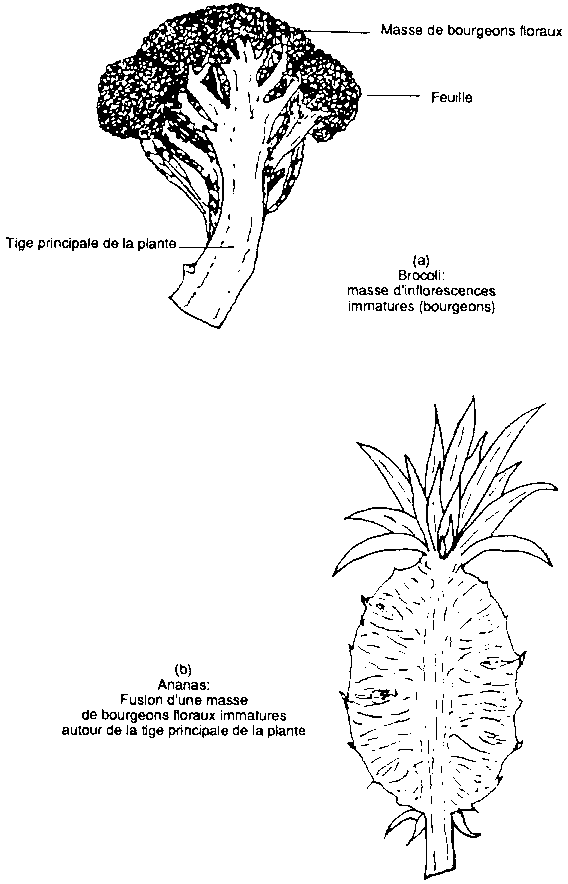 | Masses d'inflorescences | Brocoli, chou-fleur (figure 4a) |