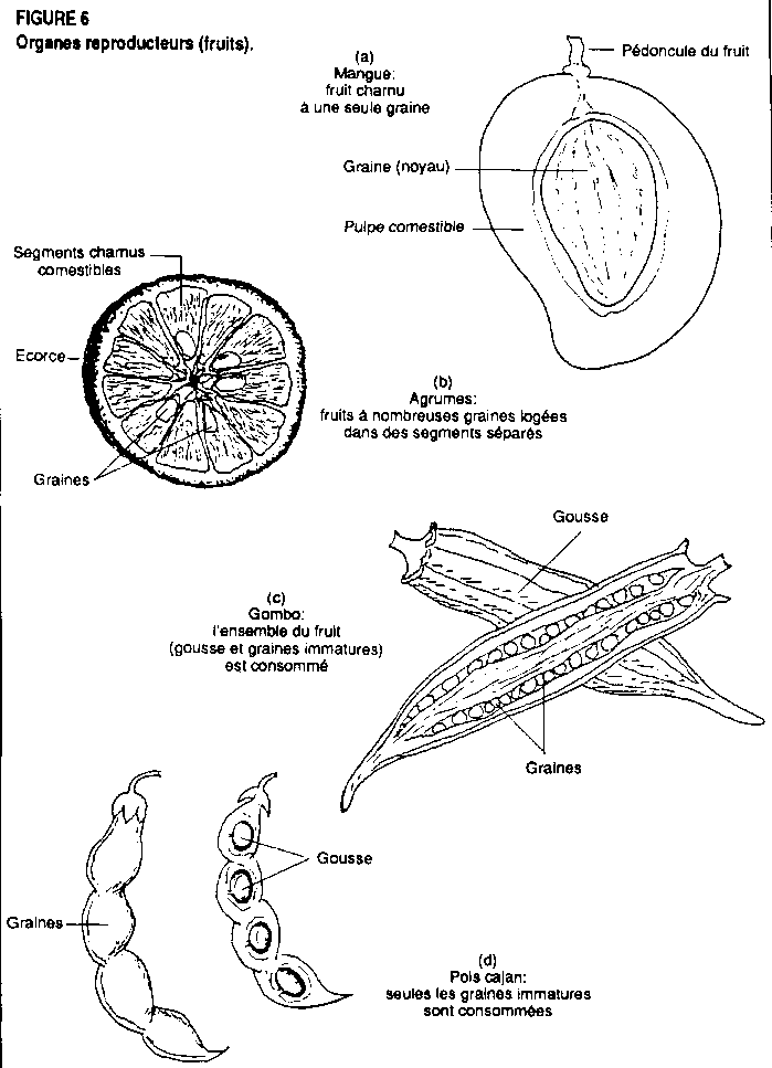| Gousses vertes immatures contenant des graines partiellement développées | Haricots verts, haricots-asperges, gombo (figure 6c) |