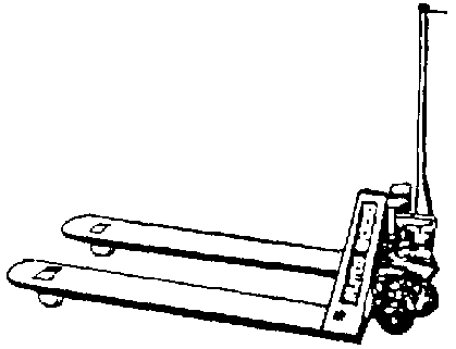 - Les chariots élévateurs poussés à la main (figure 26) sont précieux dans les ateliers d'emballage d'une certaine importance où la mise en palettes des charges doit être mécanisée (figure 27); toutefois, ces chariots ne peuvent pas servir à placer les palettes chargées sur les véhicules; pour cela, il faudrait que le quai de chargement soit élevé