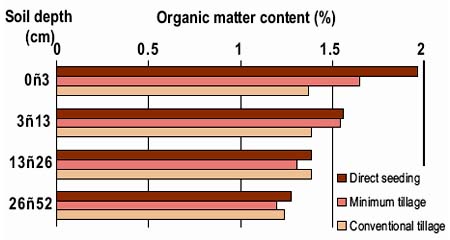 The reduction of soil disturbance through zero-tillage, the use of cover crops and the preservation of crop residues on the soil surface result in increased activity of the soil and in the accumulation of organic matter, mainly in the topsoil (Figure 22).