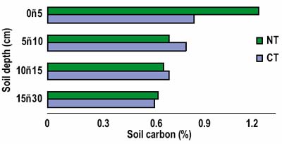 Note:Conventional (CT) and conservation (NT) agriculture, after two complete cropping cycles (4 years).