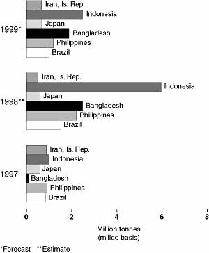 Indonesia was the largest importer during the calendar year 1998, with estimated record purchases of