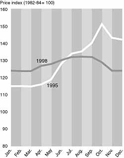 FIGURE 4: FAO total export price index for rice, 1995 and 1998