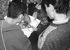 Une équipe chargée de l'Inventaire forestier arménien navigue à la recherche de la parcelle témoin - T. THURESSON Parfois les administrations locales font compiler des données à partir d'inventaires forestiers subjectifs, basés sur les peuplements, et les données sont souvent anciennes. En Arménie par exemple, la base de données disponible en 1998 contenait encore d'anciens résultats d'inventaires de l'ex-Union soviétique. Un inventaire stratégique objectif des forêts arméniennes, financé par l'ASDI (Agence suédoise de coopération internationale au développement), a été effectué pour obtenir de meilleures informations à l'appui des décisions pour l'élaboration de la politique forestière qui était en cours dans le pays (Thuresson, Drakenberg et Ter-Gazaryan, 1999). Dans cet inventaire forestier à faible intensité d'échantillonnage, 270 sous-compartiments, stratifiés par volume et par âge à partir des anciennes données d'inventaire, ont été inventoriés (avec une moyenne de 10 parcelles circulaires de 10 m de rayon, dans chaque compartiment). En moyenne, trois personnes ont inventorié un sous-compartiment par jour, sans compter les travaux de préparation. Les résultats avaient de quoi surprendre les décideurs. Par exemple, la croissance mesurée était de 2,86 ± 0,17 m3 par hectare et par an, soit deux fois le chiffre officiel précédent, qui était de 1,4 m3 par hectare et par an. Les mesures des souches indiquaient que le volume des coupes était de l'ordre de 600 000 m3 par hectare et par an (sur 215 000 ha), soit environ six fois plus que les possibilités de coupe annuelles officielles, qui étaient de 100 000 m3 par hectare et par an. Les résultats de l'inventaire ont fini par inciter à modifier la politique forestière arménienne. Un séminaire basé sur les nouvelles informations a été tenu à l'intention des décideurs du pays. Beaucoup avaient du mal à accepter les grandes différences entre les anciens chiffres de l'Etat et les résultats de l'échantillonnage aléatoire stratifié. Toutefois, tous les participants ont conclu que les abattages illicites étaient un gros problème et que, d'une manière générale, les forêts n'étaient pas exploitées de manière durable. La politique forestière devait être mise à jour, ce qui supposait d'effectuer d'autres inventaires sur le terrain. Dans ce cas, l'inventaire objectif a servi de signal d'alarme, et il a incité les autorités locales à procéder à d'autres inventaires - pour en fin de compte arriver à un inventaire intégral du couvert forestier, basé sur les peuplements.