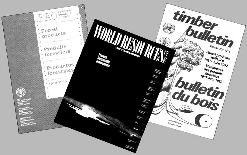 The World Resources Institute's World Resources - a Guide to the Global Environments includes a range of country statistics (from FAO) on forest resources, wood production and trade as well as on the protection of natural areas and their management and on rare and endangered species. It is based on data from the World Conservation Monitoring Centre and other international organizations.