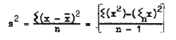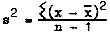 Esta formula facilita mucho el cálculo, en particular si se tiene una máquina de calcular. Es muy importante observar el significado de los paréntesis: ∑(x²) significa que hay que adicionar todos los valores de x²; (∑x²) significa que hay que adicionar todos los valores de x y elevar al cuadrado el resultado. Volviendo a tomar la primera muestra de la sección 2.3.1.