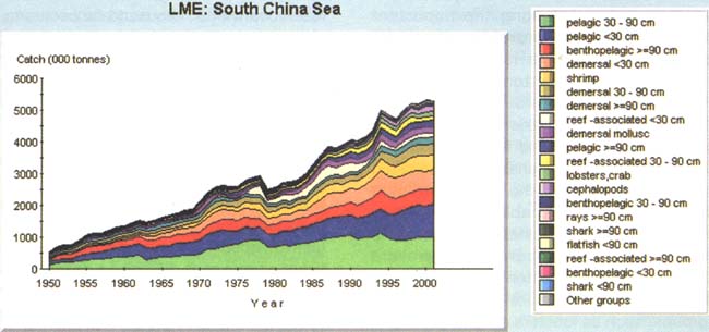 [21] Christensen, V. T., Garces, L. R., Silvestre, G. T. and Pauly, D. (2003). Fisheries impact on the South China Sea large marine ecosystem: A preliminary analysis using spatially explicit methodology, p. 51-62 in Silvestre, G.T., Garces, L.R., Stobutzki, I., Ahmed, M., Sontos, R.A.V., Luna, C.Z., Lachica-Alino, L., Christensen, V., Pauly, D. and Munro (eds.) Assessment, management and future directions for coastal fisheries in Asian States. WorldFish Centre Conference Proceedings 67, 1 120 pp.