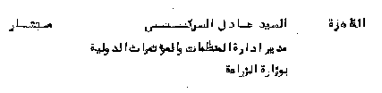 | Adviser | Adel H. EL SARKI Director of International Organizations and Conference Division Ministry bf Agriculture |