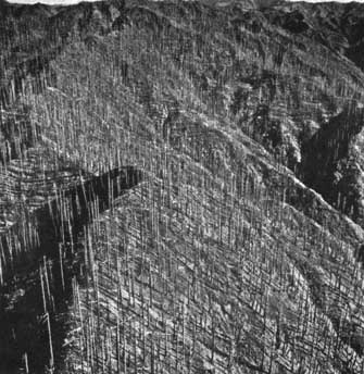 Les contrastes entre des types de forêts croissant à peu de distance les unes des autres sont à peine moins marqués. Dans l'Etat de Californie par exemple, les peuplements denses et majestueux de redwood (Sequoia sempervirens), dont le volume à l'unité de surface dépasse celui de n'importe quelle autre forêt du monde, recouvrent les pentes d'une chaîne de montagne au voisinage de la mer. Formant contraste, le chaparral broussailleux (comprenant diverses espèces de Ceanothus, Cercocarpus et Arctostaphylos), dont le couvert a pour principale utilité la protection des versants, tapisse les pentes intérieures des mêmes montagnes cuites au soleil, l'Etat du Montana, chevauchant la ligne de partage des eaux des montagnes Rocheuses, offre un autre exemple de contraste. A l'ouest de la ligne s'étendent de vastes peuplements de conifères purs - pins, épicéas, sapins et mélèzes - caractéristiques des Etats montagneux de l'Ouest. Mais, immédiatement à l'est du changement de pente - où commencent les plaines qui s'étendent à travers le centre du continent jusqu'aux monts Appalaches - il n'y a que des bois épars. On y trouve surtout des peupliers (Populus spp.) et autres feuillus spontanés en galerie le long des cours d'eau.