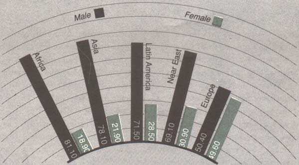 Times and family structures are changing, however. In Africa, generally 35 per cent of households are now headed by women as a result of migration, death, divorce or abandonment. "In Yemen," writes Das, "male emigration is particularly heavy, where an eighth of the population works in paid employment elsewhere. The women left behind have had to assume the agricultural duties of the absent husbands and, as direct recipients of remittances, have greater decision-making power than would be expected in an Islamic country." In Syria, she adds, "traditionally, women had no definite decision-making role in the majority of family affairs because of the dominance of male members in the joint family system. The situation now seems to have changed owing to the disintegration of this family system in the rural areas."