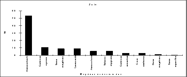 Fig.1 : Evolution mensuelle de la consommation des espèces représentant au moins 10% du régime alimentaire pendant un mois de l’année. ( Source : Ciofolo et al, 1998)