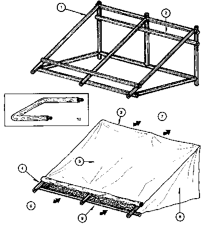 Otro tipo de secador solar es el de tipo de invernadero (Figura 9). Este secador se puede construir con una armazón de madera y plástico. La cara inclinada del secador se cubre con plástico transparente y se vuelve hacia el sol; las caras laterales se pueden cubrir con plástico de calidad inferior, el piso se cubre con plástico, sin orificios, sobre el cual se coloca una capa de 0,10 a 0,15 m de