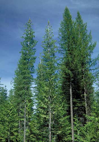 Immature forests, widespread in Europe, North America and East Asia, act as carbon sinks without deliberate human intervention; half of the biomass that they accumulate is carbon (shown, young white pine and larch in the United States) |