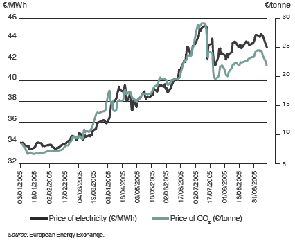 Correlation between electricity prices and the prices of CO2 allowances under EU ETS |