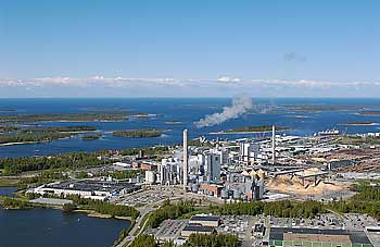 Most CO2 emissions from pulp and paper mills are related to fuel combustion; in this large plant in Finland, modern recovery technology reduces emissions almost to zero |