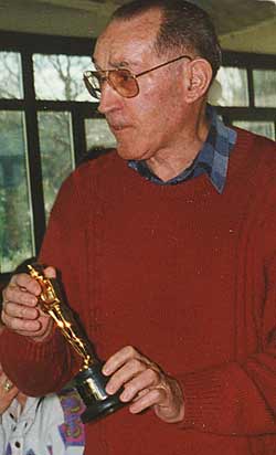 At a Commonwealth Forestry Association outing, Oscar Fugalli holds a Hollywood Oscar statuette as he spoofs Oscar Wilde, speaking on “the importance of being Oscar” |
