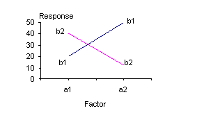 These ideas may be illustrated graphically. Figure 4.5 plots the response data in Table 4.12. against factor A for both levels of factor B.