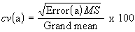 The value of cv(a) indicates the degree of precision attached to the main plot factor. The value of cv(b) indicates the precision of the subplot factor and its interaction with the main-plot factor. The value of cv(b) is expected to be smaller than that of cv(a) because, as indicated earlier, the factor assigned to the main plot is expected to be measured with less precision than that assigned to the subplot. In our example, the value of cv(b) is smaller than that of cv(a) but both of them were high enough to mask any possible treatment differences turning the all the factor effects in the ANOVA nosignificant.