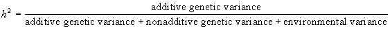 The observed variation in a group of individuals is partly composed of genetic or heritable variation and partly of non-heritable variation. The fraction of total variation which is heritable is termed the coefficient of heritability in the broad sense. The genotypic variation itself can be sub-divided into additive and nonadditive genetic variance. The ratio of additive genetic variance to the total phenotypic variance is called the coefficient of heritability in the narrow sense and is designated by h2. Thus,