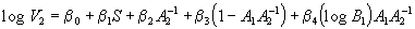 To illustrate an application of the modelling approach, consider the equations reported by Brender and Clutter (1970) which was fitted to 119 remeasured piedmont loblolly pine stands near Macon, Georgia. The volume (cubic foot/acre) projection equation is