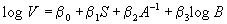 The parameters of Equation (6.32) can be estimated directly through multiple linear regression analysis (Montgomery and Peck,1982) with remeasured data from permanent sample plots, keeping V2 as the dependent variable and A1, A2, S and B1 as independent variables.