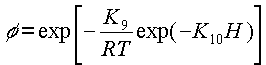 | f= 1-exp[-(k7THk89] | Henderson(1952) | ec.24 |