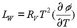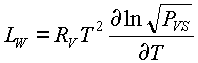 en que a = 4,35 y b = 28,25. Los valores de Lv/L'v se obtuvieron mediante el procedimiento ya descrito, y los coeficientes a y b se estimaron por análisis de regresión. La entalpía de vaporización del agua libre está representada por la expresión:
