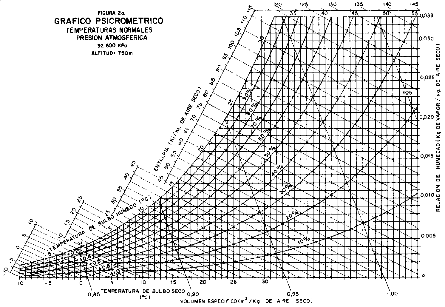 PSICROMETRICO, TEMPERATURAS NORMALES, PRESION ATMOSFERICA 92,600
