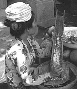 Coconut grater made from the leaf stalks of a Calamus species, Bali, Indonesia
