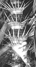 The leaf sheath of Daemonorops sabut has interlocking combs of spines that provide galleries for nesting ants - J. DRANSFIELD |