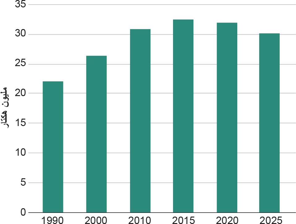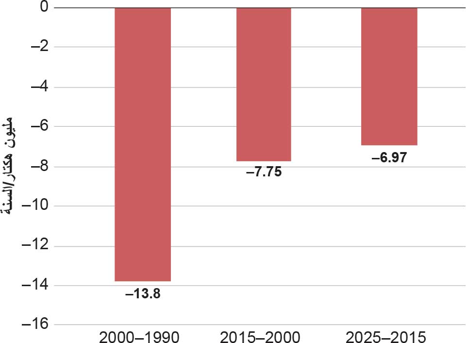 وعلى الصعيد العالمي، حصل انخفاض صافٍ في مساحة الغابات البكر بمقدار 110 هكتار بين عامَي 1990 و2025. وارتفع متوسط المعدل السنوي لصافي الخسارة في الغابات البكر من 3.48 مليون هكتار في الفترة 1990-2000 إلى 3.92 مليون هكتار في الفترة 2000-2015، ثم انخفض كثيرًا في العقد الأخير فبلغ 1.61 مليون هكتار (الجدول 21).