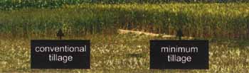 Minimum tillage took less time than conventional so the wheat crop (on right) could be sown earlier and in this case yielded more