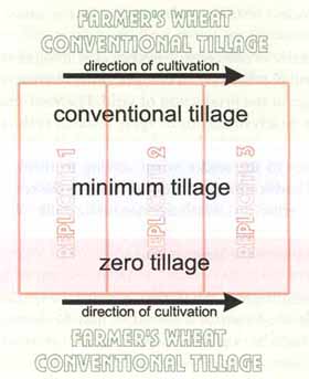 The trial described here for conducting on-farm compares wheat crops grown under three tillage systems: full or conventional tillage, minimal tillage and zero tillage.
