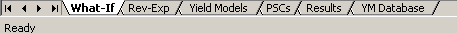 The first two commands in the Analyse menu assist your analysis by splitting the screen window into two panes, with the summary results in the tope and the What-if or the Revenue - Expenditure screen in the lower one. Due to the limitations of the spreadsheet package, rather than FIAP, it is not possible to alter all the variables. You will notice that in the menu, only Analyse is not greyed out, and from this you will notice that Reset is the only option available. This means it is not possible to load in new yield models for new crop components, nor can you load in new PSCs. However you are able to change areas, years, discount rates, WHC, cost overheads, price and production adjustments and PSCs (as long as it is to one already loaded).