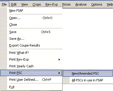 The Print PSCs command offers you a choice of printing only the new or amended PSC, or all those currently in use in FIAP. This command is also available from within the Prices menu.