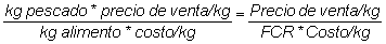 Es necesario tomar en cuenta el costo de venta de los peces y el Factor de Conversión de Alimento (FCA). Tabla 5. La fórmula que se da en esta tabla compara y nos demuestra cuantos dolares podemos esperar, teniendo en cuenta la inversión de cada dolar invertido en el alimento.