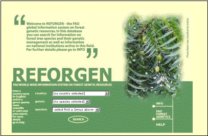 Dans Ressources génétiques forestières n° 26 (1996), nous avons informé nos lecteurs de la mise en place par la FAO d'un Système mondial d'information sur les ressources génétiques forestières (REFORGEN). Le système est maintenant disponible sur l'internet à l'adresse suivante: