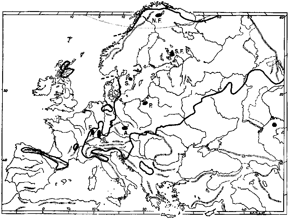 L'étude a été limitée au pin sylvestre (Pinus silvestris L.) et à l'épicéa (Picea abies Link.), deux espèces largement répandues en Europe et très importantes économiquement. Le matériel fut réuni au cours des automnes 1958 et 1959. Dix peuplements de pin et 10 d'épicéa furent étudiés dans le Sud de la Finlande, en Suède, en Allemagne, en Pologne et en Autriche, 10 peuplements de pin en France et 30 dans le Nord de la Finlande. Ces placettes d'expérience ne sont pas forcément représentatives de l'ensemble du pays.