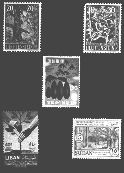 C'est la troisième année que cette petite principauté émet une série de trois timbres représentant des arbres et des arbrisseaux. Le timbre de 20 rappen représente des mélèzes.