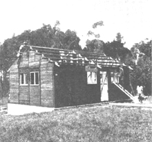 Les photographies montrent une maison préfabriquée simple réalisée dans ce dernier pays à la station de recherches de l'INEAC. L'objectif poursuivi est la réalisation d'une habitation solide, confortable, transportable, de conception simple, facile à monter et bon marché.