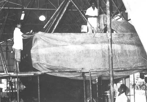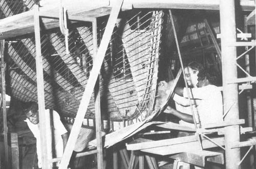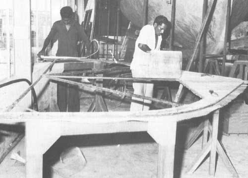 On a utilisé une technique bien au point et éprouvée pour les cours de formation car elle offrait le meilleur moyen pour transmettre la formation à ceux des participants n'ayant aucune expérience préalable du ferrociment en tant que matériau de construction des navires et à ceux qui n'avaient pas l'expérience de la construction navale. L'Institut disposait cependant d'une petite équipe de charpentiers qui connaissaient la construction des bateaux de pêche en bois.