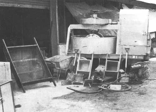 - 2 hommes pour remplir les boites de ciment et de sable - manoeuvres.Equipe de manutention: