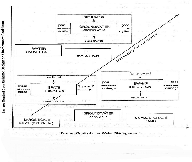 Brown et al. (1995) attempted to show how these technologies where linked to farmer control, i.e. the level of control that a farmer would have over the design and investment decisions and over water management, Figure 1.